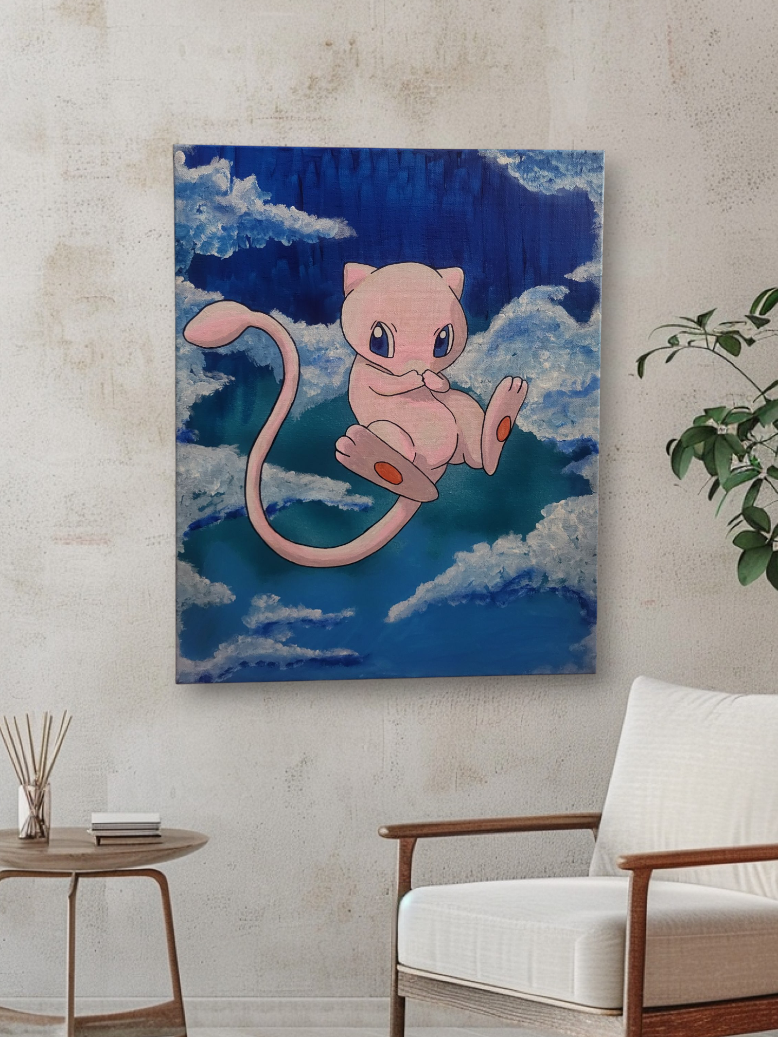 "Mew in the Clouds" Acrylic Painting