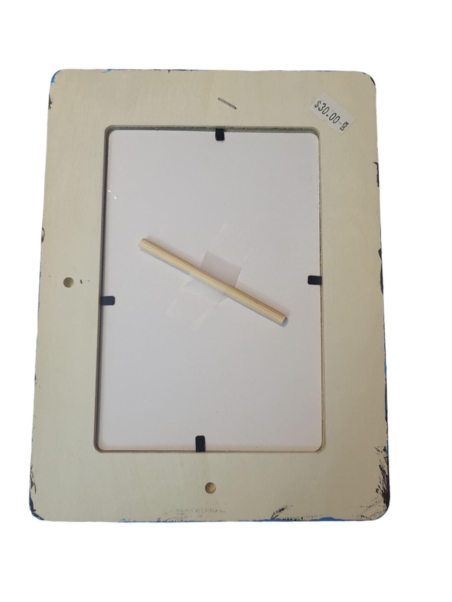 Wooden frame is 6 x 8.5 inches. Inside frame is 4 x 6 inches. 2 in stock.
